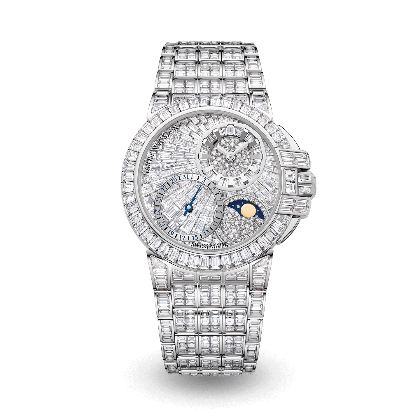 The House of Harry Winston unveils a refined high-jewelry edition of the Ocean Date Moon Phase, set with exceptional diamonds. Blending artistry and horological mastery, this limited-edition timepiece sails through time with radiant elegance.