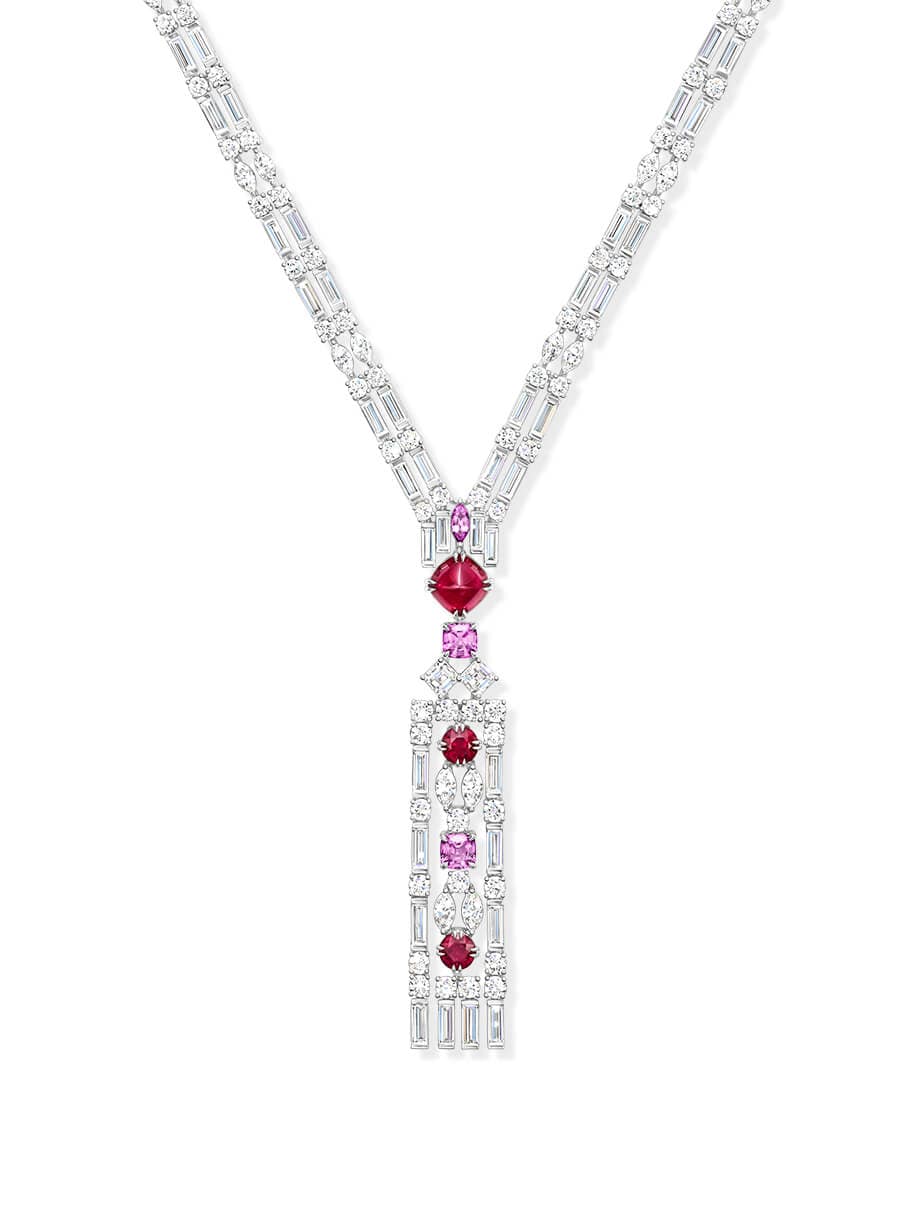 Meticulously crafted from emeralds, sapphires, and diamonds in a geometric arrangement, this pair of Brownstone Earrings echoes the distinctive facades of New York’s historic residences, accenting the ears with their same stately splendor.