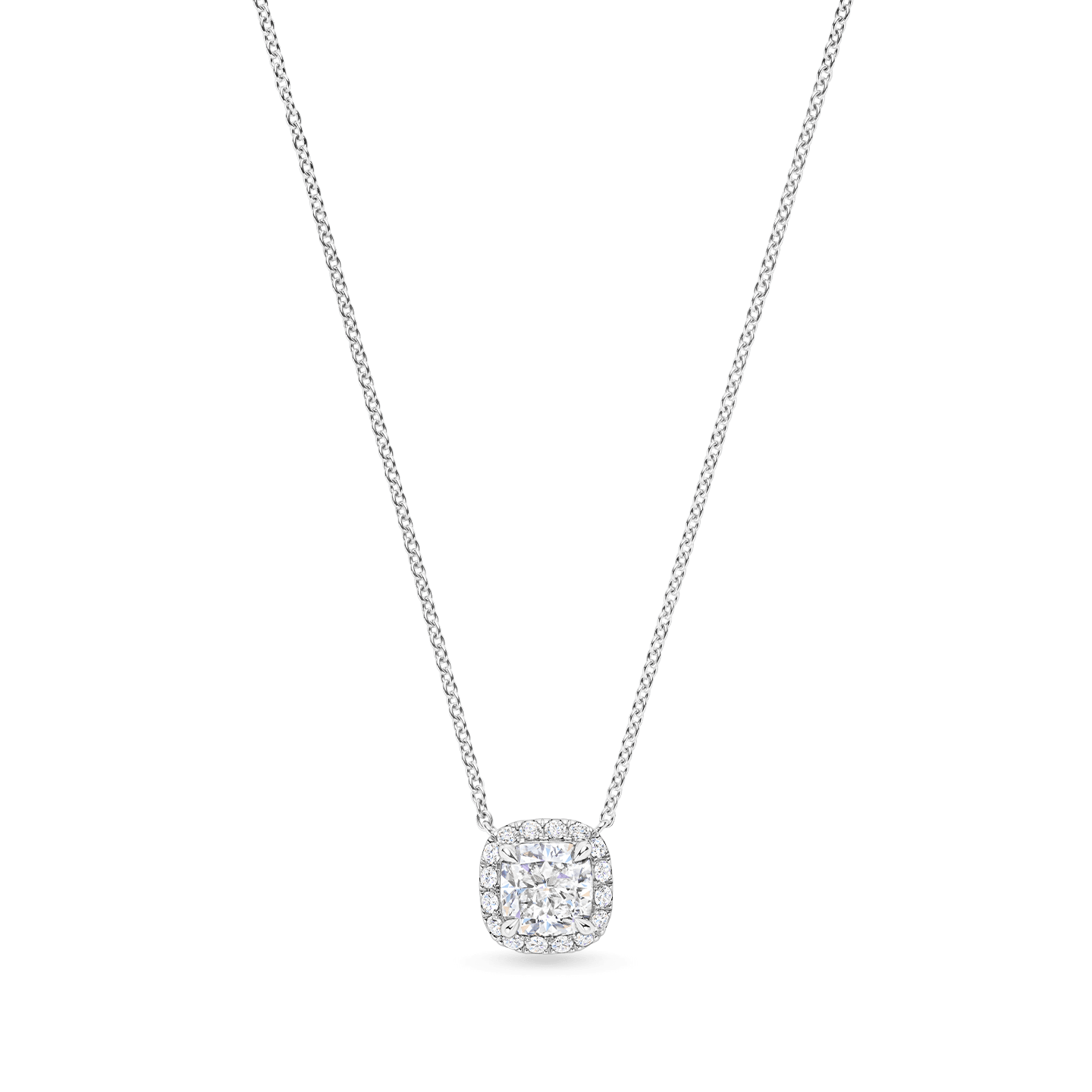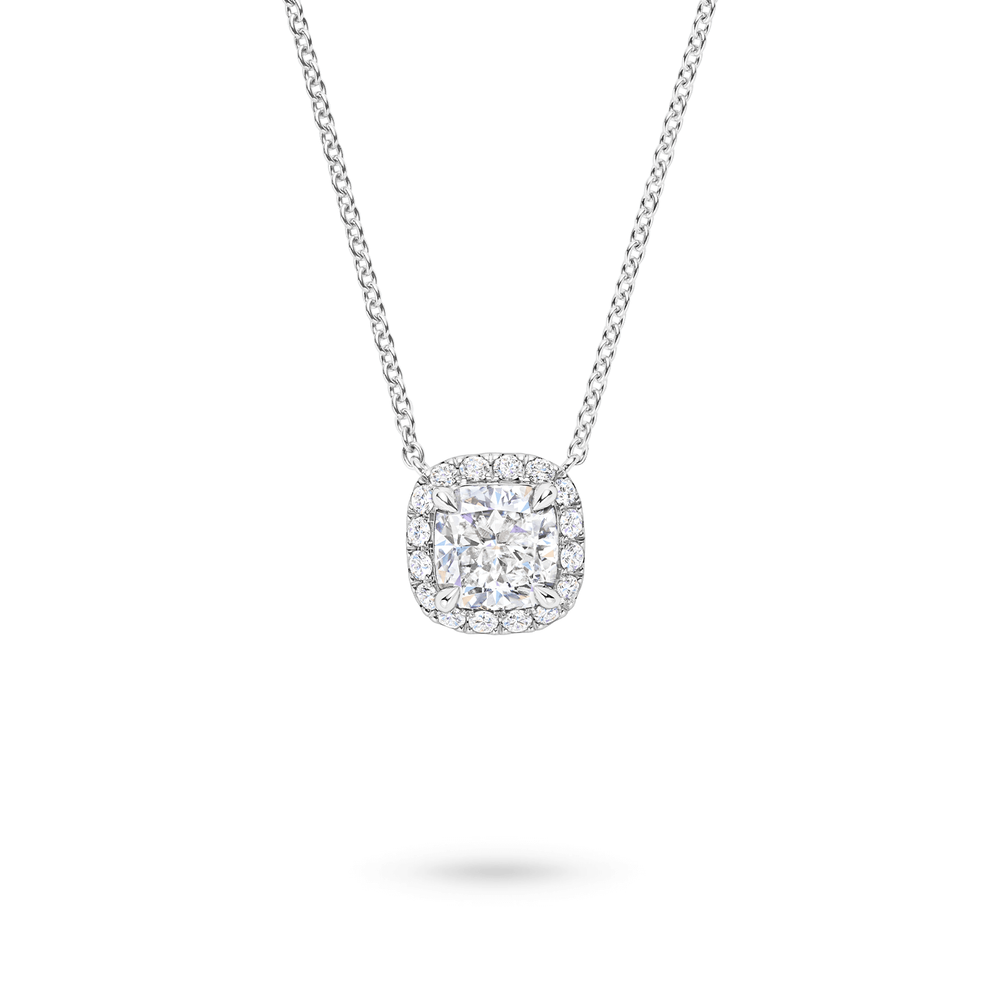 Exquisite diamonds speak for themselves. In the Classics Collection by Harry Winston, precious stones are carefully set by hand in near-invisible settings, so that the jewels seem to float weightlessly. This diamond pendant is available with 1 cushion-cut diamond starting from 1.00 carat, with micropavé on frame, set in platinum. With a timeless aesthetic, the House of Harry Winston is devoted to creating gemstone jewelry of unique radiance and beauty. The Harry Winston legacy of brilliant diamond jewelry will continue to inspire, now and always.