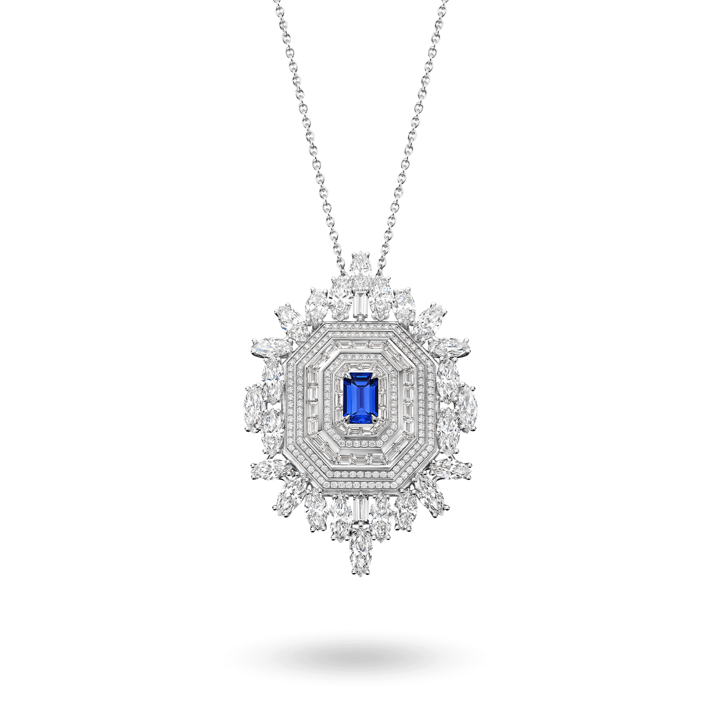 The Ultimate Emerald Signature is the brightest star in the constellation of Harry Winston’s High Jewelry Timepieces collection. In 2021, a new version of the Ultimate Emerald Signature with blue sapphires joins the series. The ultimate accessory for glamorous red carpet occasions, the versatile design means the timepiece can be worn around the wrist, around the neck as a pendant or even as a brooch.