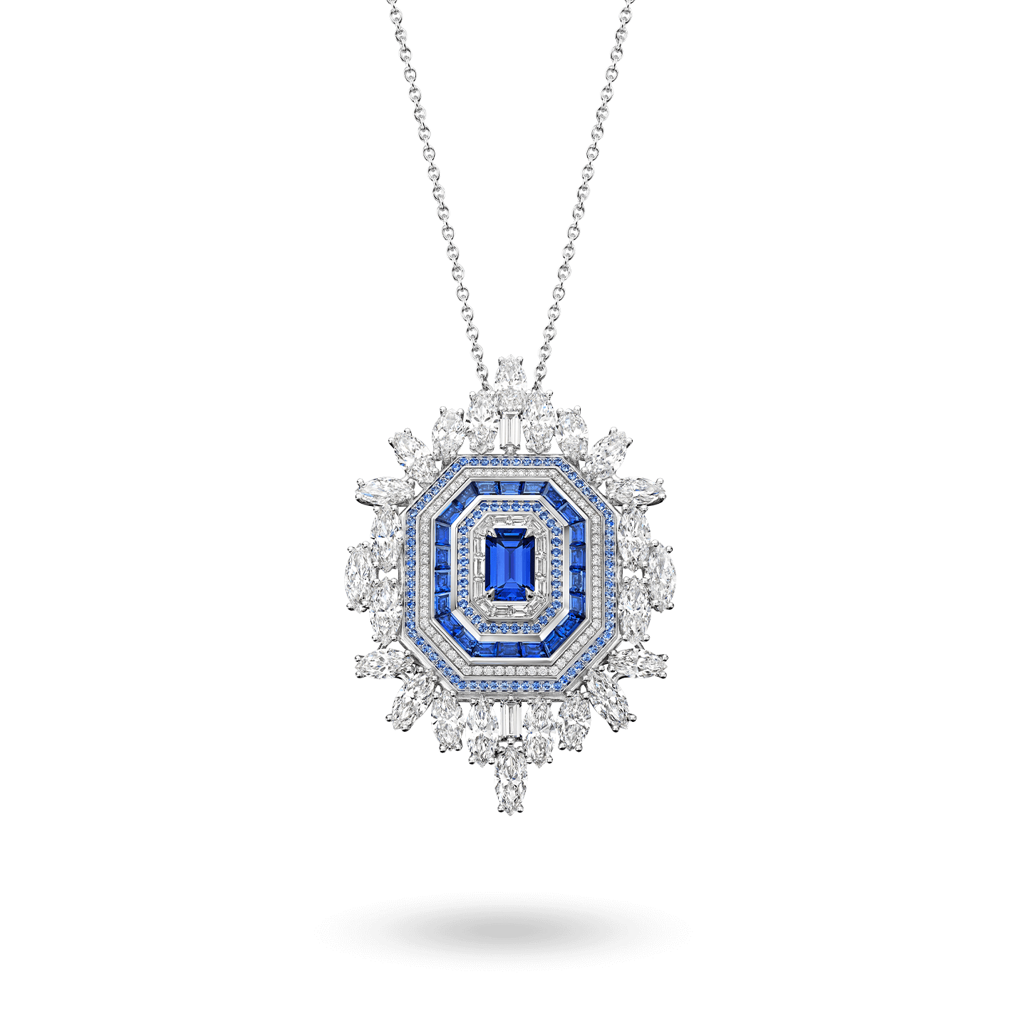 The Ultimate Emerald Signature is the brightest star in the constellation of Harry Winston’s High Jewelry Timepieces collection. In 2021, a new version of the Ultimate Emerald Signature with blue sapphires joins the series. The ultimate accessory for glamorous red carpet occasions, the versatile design means the timepiece can be worn around the wrist, around the neck as a pendant or even as a brooch.