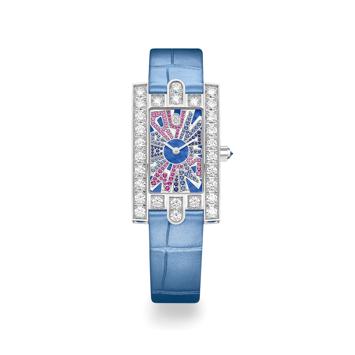 A vibrant array of pink sapphires and diamonds captures downtown New York's dynamic spirit, bringing a pop of color and contemporary style to any look.