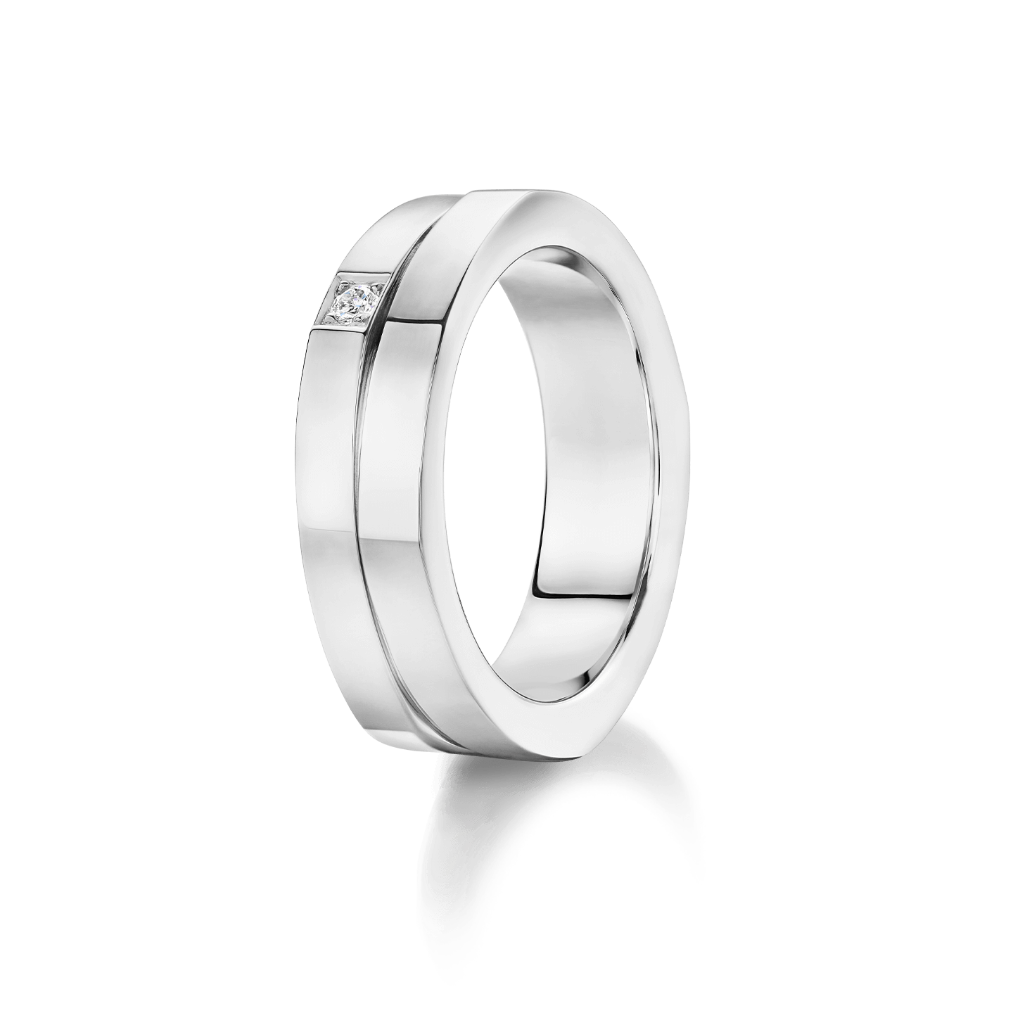 The perfect way to honor your love, the Infinite Wedding Band is made of pure platinum, one of the world's most enduring metals. Meticulously crafted by Harry Winston artisans, this 5.5 mm wedding ring will be a treasured symbol of your vows. With its uniquely modern shape, this platinum wedding band featuring one round diamond weighing approximately 0.02 carats, is a powerful and lasting sign of your future together.