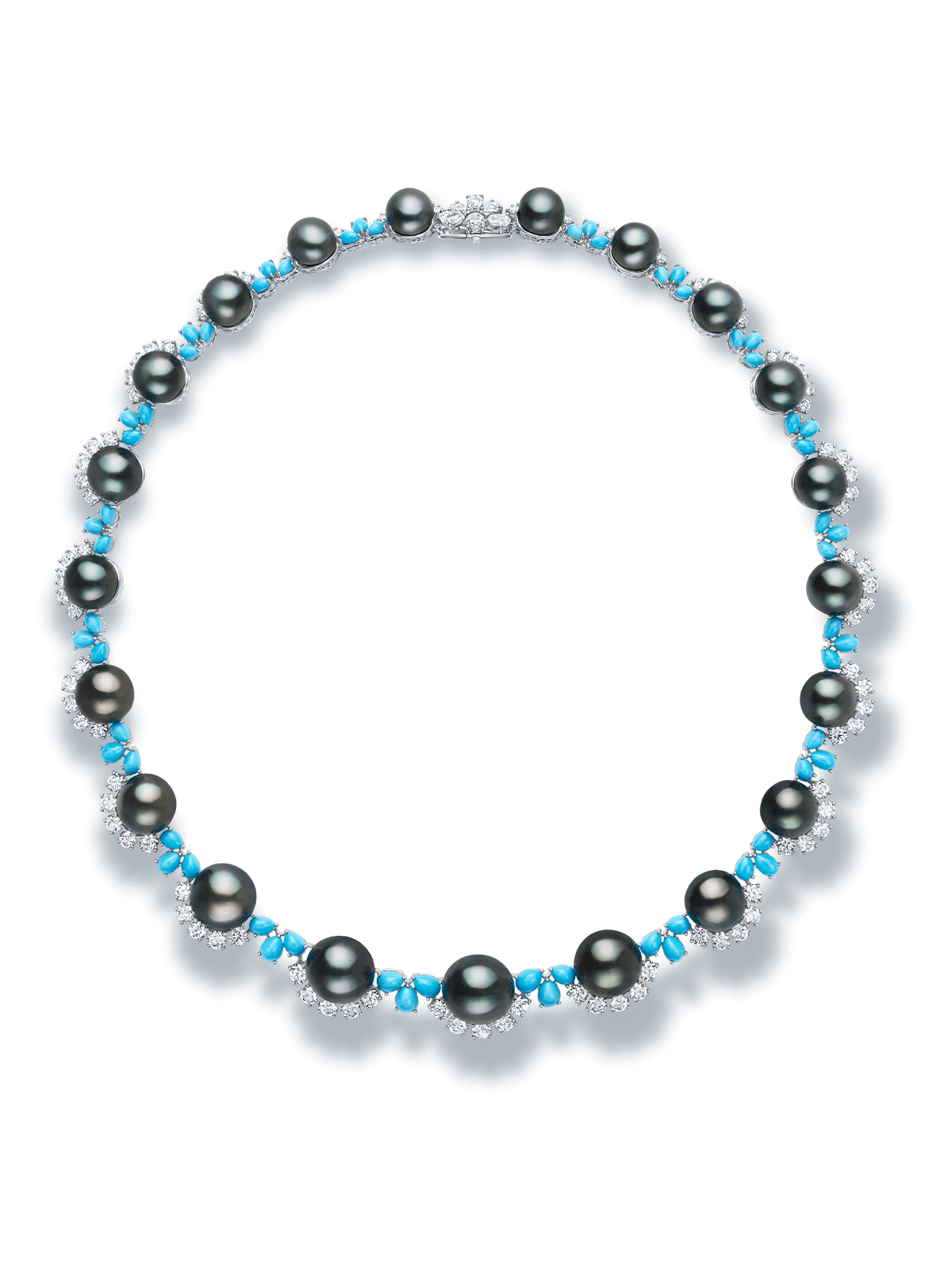 The hypnotic beauty of Tahiti comes to life in a suite of jewels crafted from rare black Tahitian pearls, exquisitely accented with sparkling diamonds and turquoise.