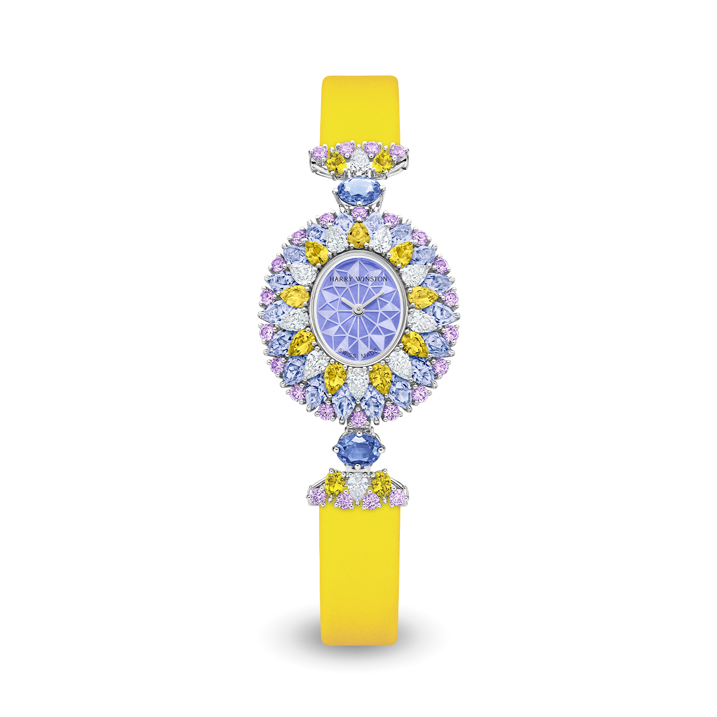 Inspired by the bright candy-colored gemstones that define the House’s Winston Candy cocktail rings, the delectable platinum Winston Candy High Jewelry Watch offers a sweet way to savor time. Incorporating the knockout glamour and intense color of the rings, this timepiece is the most delectable treat to adorn the wrist.