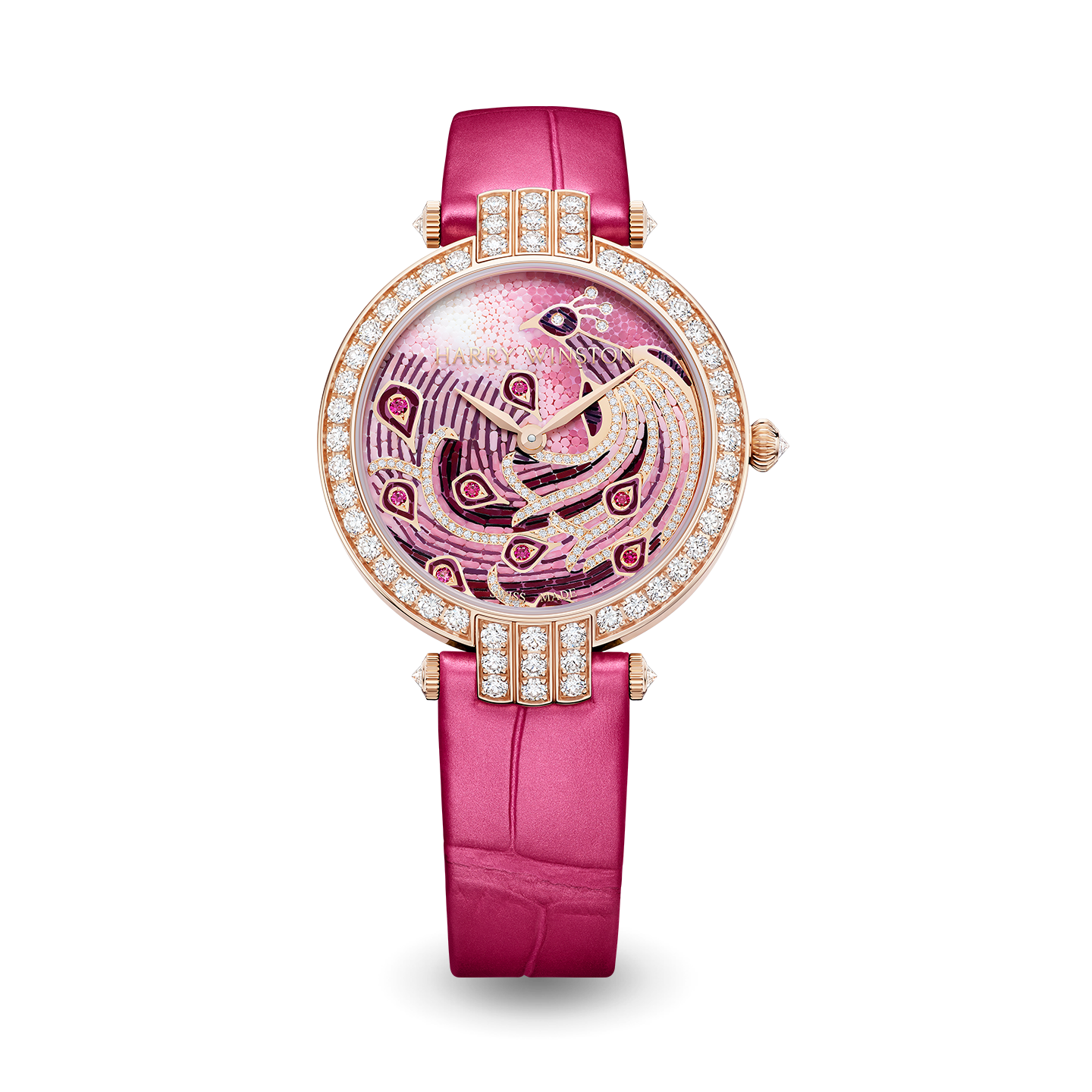 Nature has always been a source of inspiration at the House of Harry Winston. The millenary art of glass micromosaic is behind the captivating dials of the Premier Precious Peacock, a much-loved bird in Harry Winston’s history of high jewelry design.
