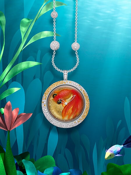 A series of watches that transform time into an art form, where the gentle elegance of goldfish comes to life upon their captivating dials.