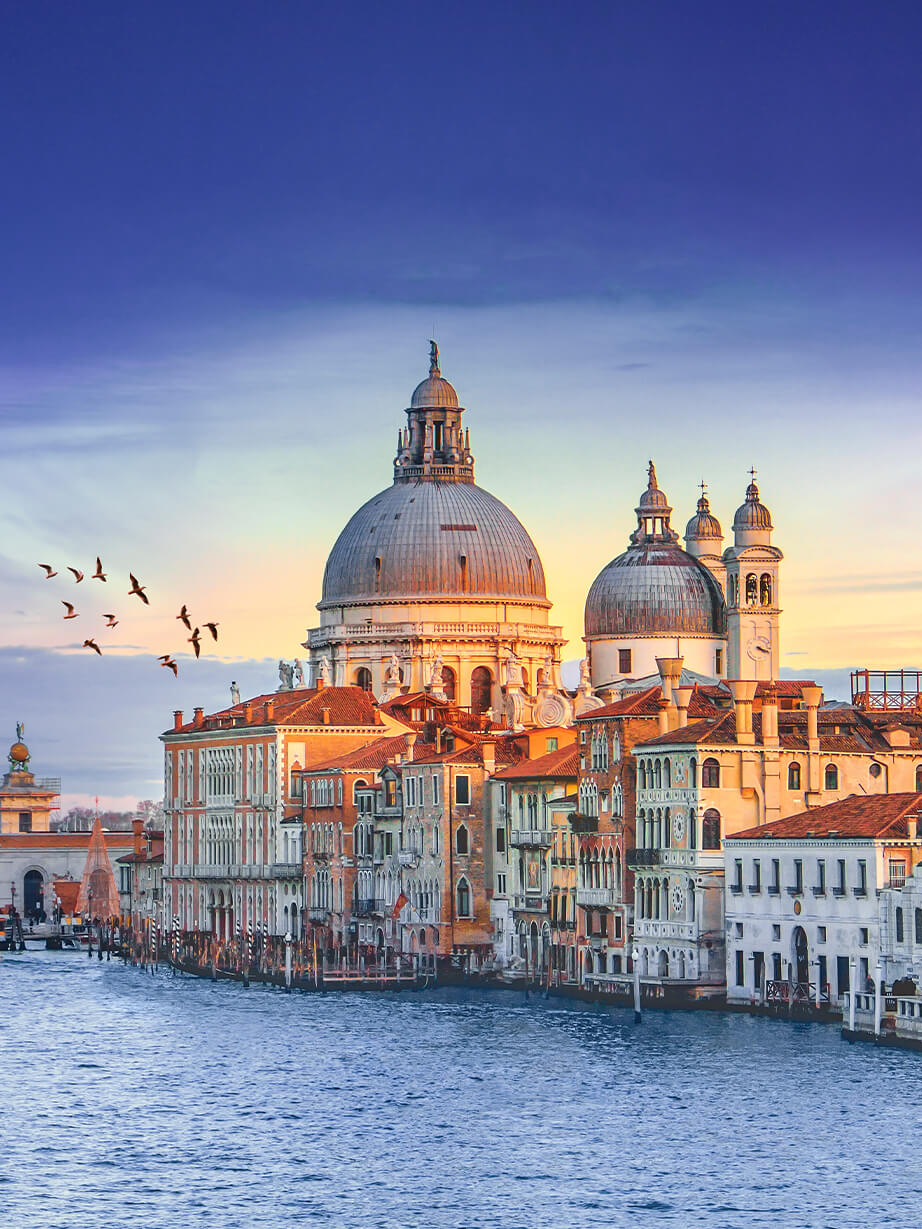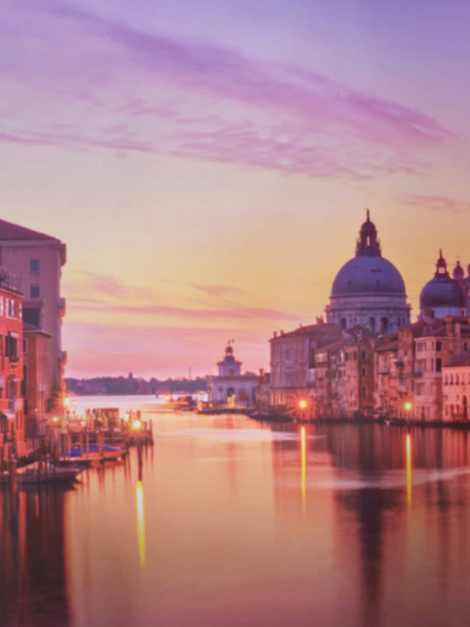 A panoramic video of Venice showing historic buildings lining the canals, with water flowing through the city.